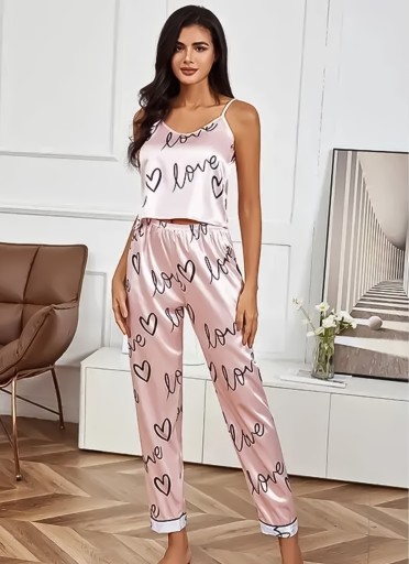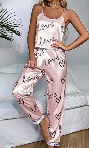 Kolor pudrowego różu w połączeniu z uroczymi napisami "LOVE" i serduszkami nadają piżamie niezwykły urok i romantyczny wygląd, który podkreśla naturalną kobiecość noszącej ją kobiety.