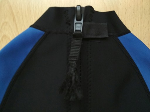Pianka neoprenowa do pływania SUNBLOCK z krótkim rękawem oraz nogawkami. Kolor czarny, niebieskie wstawki, białe napisy i logo. Grubość pianki około 1 mm. Góra zapinana na zamek błyskawiczny.