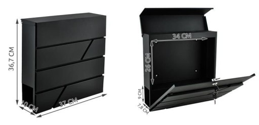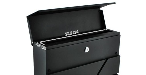 Skrzynka wyposażona jest w zasłonięty wrzut na listy, który chroni korespondencję przed deszczem i innymi warunkami atmosferycznymi. Bez problemu mieści listy w formacie A4.
