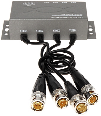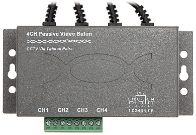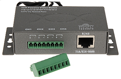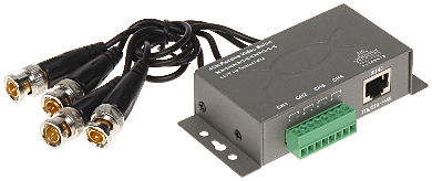 Standard: AHD - 5 Mpx, HD-CVI - 8 Mpx 4K UHD, HD-TVI - 8 Mpx 4K UHD, CVBS - PAL, NTSC Rodzaj urządzenia: Pasywne Liczba kanałów: 4 szt. Wideo Zasięg wideo: 250 m @ 720p - UTP kat. 5e 150 m @ 1080p - UTP kat. 5e 400 m @ CVBS - PAL, NTSC - UTP kat. 5e Napięcie we/wy 75Ω (CVBS): 1 Vpp Tłumienie: 4.43 MHz @ 0.42 dB 11 MHz @ 0.71 dB 21 MHz @ 1.07 dB 38 MHz @ 1.41 dB 42 MHz @ 1.41 dB 67.5 MHz @ 2.32 dB Separacja między wejściami: > -50 dB CMRR (dB @ 5MHz): 60 dB Impedancja złącza koncentrycznego: 75 Ω Impedancja złącza symetrycznego: 100 Ω Typ złącza koncentrycznego: 4 x BNC Wtyk na przewodzie Typ złącza symetrycznego: Zaciski kablowe / RJ-45 (8-pin, 4 pary) Temperatura pracy: -10 °C ... 70 °C Dopuszczalna względna wilgotność otoczenia: < 95 % Waga: 0.175 kg Wymiary: 105 x 58 x 25 mm Gwarancja: 2 lata