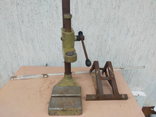 statyw do wiertarki +loze do mocowania na sciane stan jak na skanie bez ukrytych wad moim zdaniem b.dobry o wym.wys. calkowita51 cm,podstawa szer.17 cm,dlug.25 cm,grub.5 cm loze scienne wykonane z katownika i plaskownika 3 cm