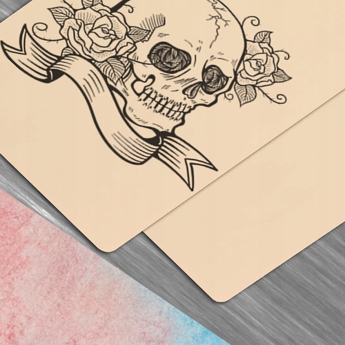 Obie strony każdej skóry tatuażu są puste. Grubość wystarczy, aby ćwiczyć różne techniki z dwustronnymi tatuażami, od sylwetki po cienie do tatuażu