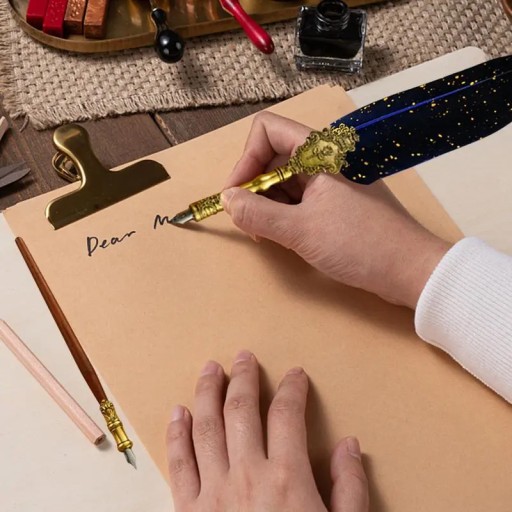 4.【Flexible Writing】The feather pen and ink calligraphy set are beautifully crafted with smooth writing without jamming, perfect for writing invitations, cards, letters, and more.