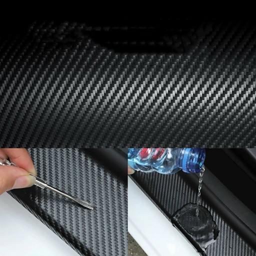 to wykończenie z włókna węglowego i paski antykolizyjne do umieszczania progów drzwi. Może być stosowany do maski samochodu, bagażnika, dachu, deski rozdzielczej, wskaźników, wnętrza, wzmacniaczy, lusterek, tylnego zderzaka, laptopów, części motocyklowych, bagażu itp. Chroń i kalkomanię.