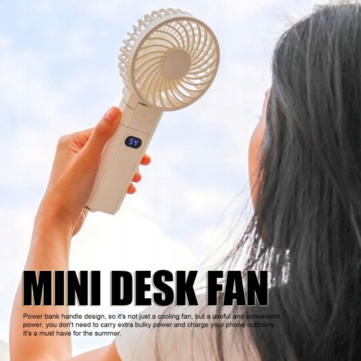 Przenośny wentylator ręczny Składany, 3-biegowy, zasilany akumulatorowo USB Mini wentylator biurkowy z zasilaniem rezerwowym do podróży na zewnątrz w pomieszczeniach