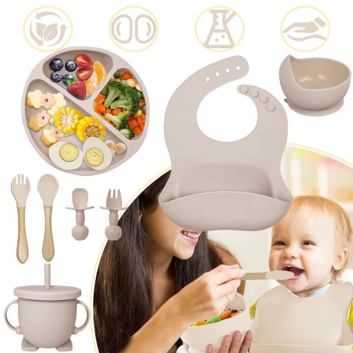 НАБОР СИЛИКОНОВОЙ ДЕТСКОЙ ПОСУДА, 8 ШТ. ПОСУДА ДЛЯ АВТОНОМНОГО КОРМЛЕНИЯ