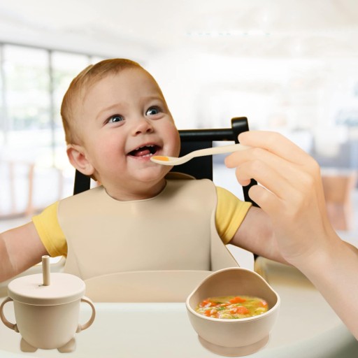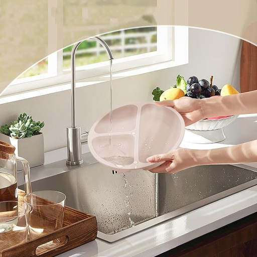 🍀 【Naucz się Jeść Niezależnie】Niemowlęta i małe dzieci lubią rzeczy o bogatych kolorach, a naczynia o ekskluzywnym wyglądzie mogą przyciągać uwagę dziecka. Talerz dla niemowląt z 3 przegródkami jest praktyczny dla matek, aby zaoferować dziecku różne smakołyki. Silikonowa miska może przechowywać ryż, purée ziemniaczane itd., a silikonowy kubek może przechowywać zupę i mleko, dzięki czemu dziecko jest zachęcane do samodzielnego jedzenia.