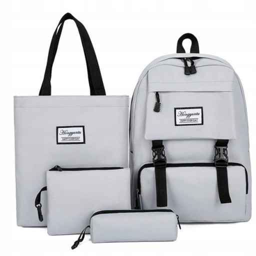 4-częściowy zestaw z litego koloru płótna szkoły plecak ustawić dużą pojemność