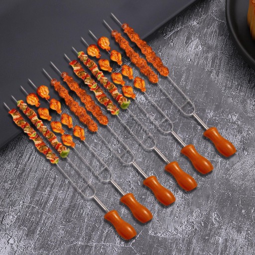 Materiał: Szpikulce do grilla wykonane są ze stali nierdzewnej, mają izolację termiczną w postaci uchwytu z żywicy, nadają się do wielokrotnego użytku i są łatwe do czyszczenia.