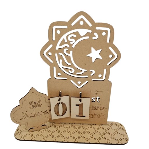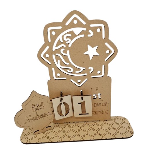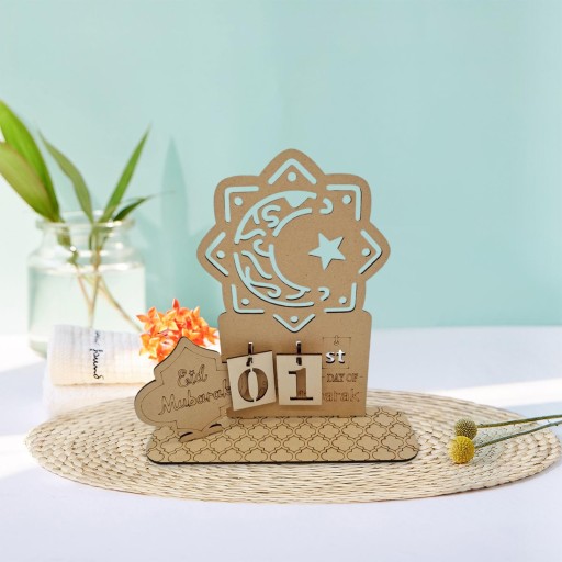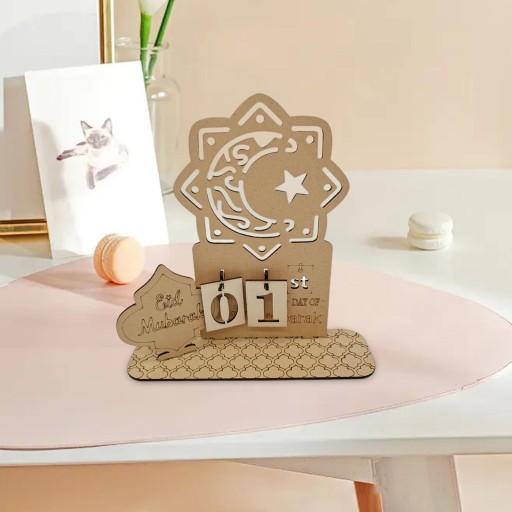 Materiał: ten kalendarz Eid Mubarak jest wykonany z lipy, lekki i nadaje się do wielokrotnego użytku.