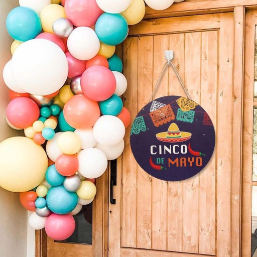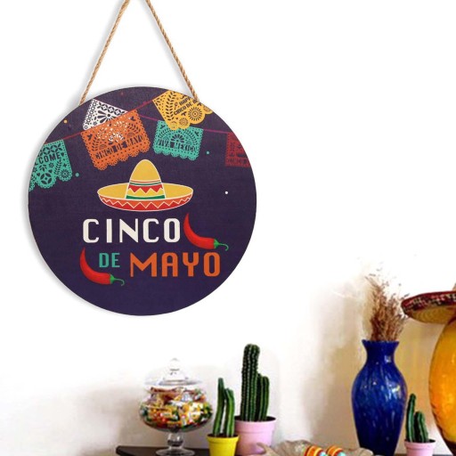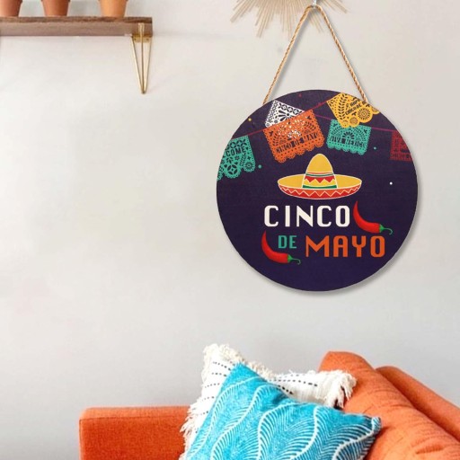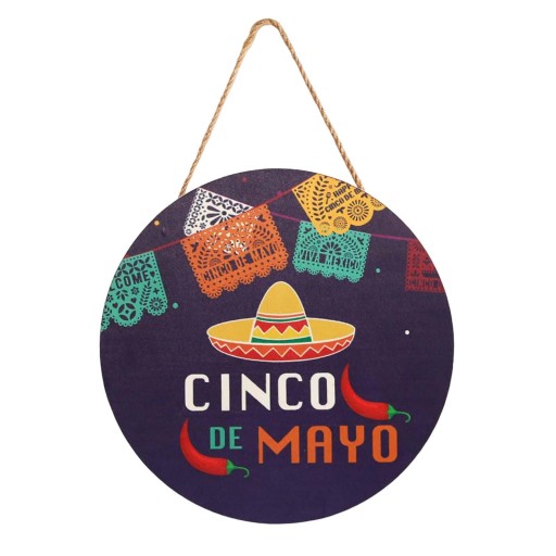Мексиканская фиеста деревянная вывеска, висящая на входной двери Синко де Майо, стиль C