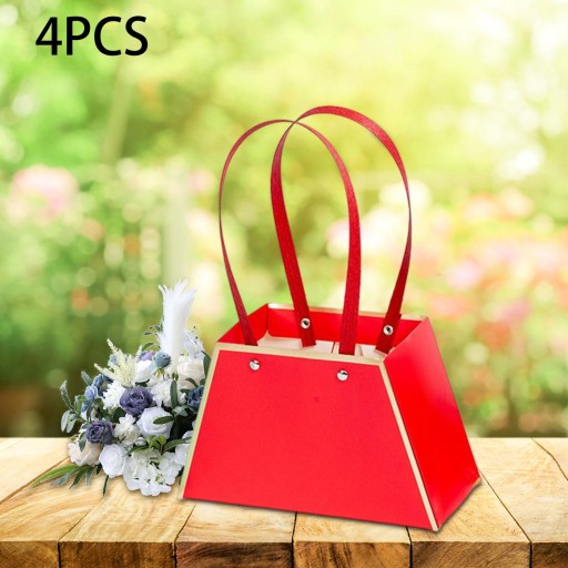4x Przenośne Torby Bukietowe Pudełko z Uchwytem Wodoodporne Ślubne Walentynki S Czerwone