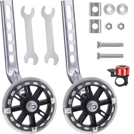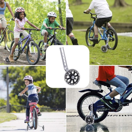 Nasze koła podporowe są łatwe w montażu i dostarczane z szeroką gamą akcesoriów. Dlatego też koła podporowe należy montować wyłącznie ze statywem, aby dzieci mogły bezpiecznie korzystać z roweru. (Można użyć ponownie)