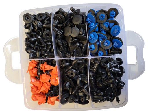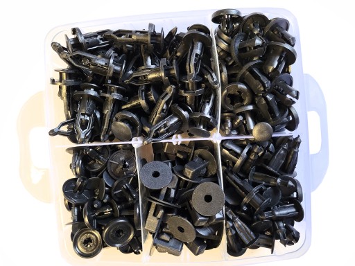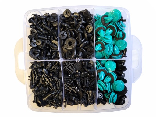 ✅ Zestaw 635 ELEMENTÓW, w skład którego wchodzi kilkanaście najpopularniejszych rozmiarów klipsów i łączników mocujących. Zestaw został wzbogacony o narzędzie do usuwania klipsów.