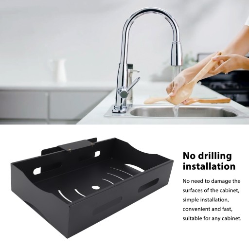 3. MONTAŻ BEZ WIERCENIA: Dzięki prostemu procesowi instalacji, który nie wymaga wiercenia ani uszkadzania powierzchni szafki, organizer można łatwo zainstalować w dowolnej szafce.