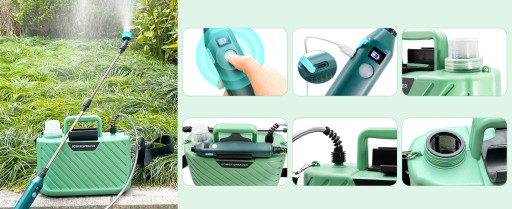 - Nasz opryskiwacz ogrodowy w kreatywny sposób wykorzystuje samozasysającą automatyczną pompę, zasilaną akumulatorem litowym o pojemności 2400 mAh.