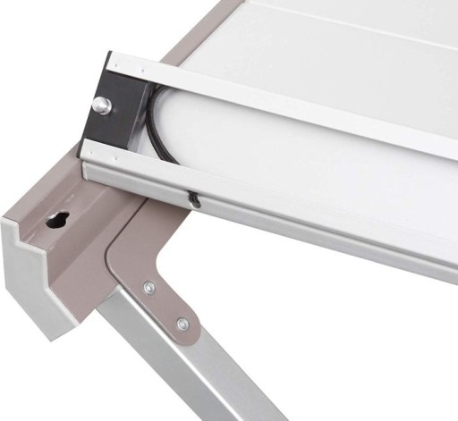 Posiada aluminiowy blat rolowany w harmonijkę - system bez przerw