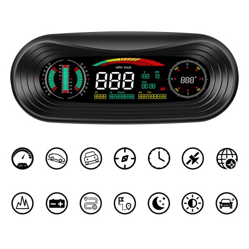 Wielofunkcyjny, może wyświetlać prędkość pojazdu, wysokość, długość geograficzną, czas jazdy, szerokość geograficzną, przebieg, zegar, napięcie, numer GPS, ikonę zmęczenia jazdy, kierunek jazdy, skalę kierunku kompasu.