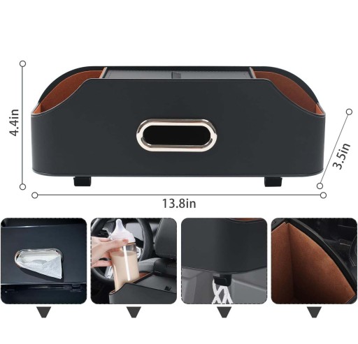 - Może przechowywać chusteczki, kubki z wodą, butelki dla dzieci i wiszące torby, zapewniając łatwy dostęp, i jest niezbędny podczas podróży z dziećmi, ponieważ zapewnia dodatkową przestrzeń do przechowywania w samochodzie.
