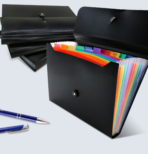 Oszczędza czas - 13 kolorowych kieszenie z górnymi zakładkami tworzą niezależne miejsca na dokumenty. Można użyć dostarczonych kolorowych etykiet do sortowania dokumentów według kategorii, co skraca czas wyszukiwania dokumentów.