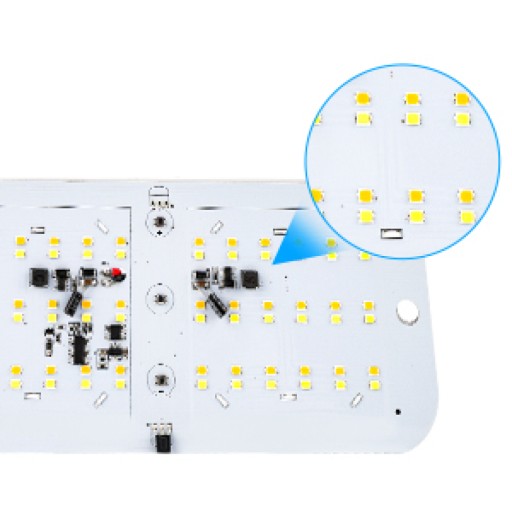 - - Są 72 sztuki 2835 diod LED o wysokiej jasności, ale miękkim świetle, a obudowa jest wykonana z ABS i PC, co rozprasza światło, nie powoduje oślepienia i nie szkodzi oczom.
