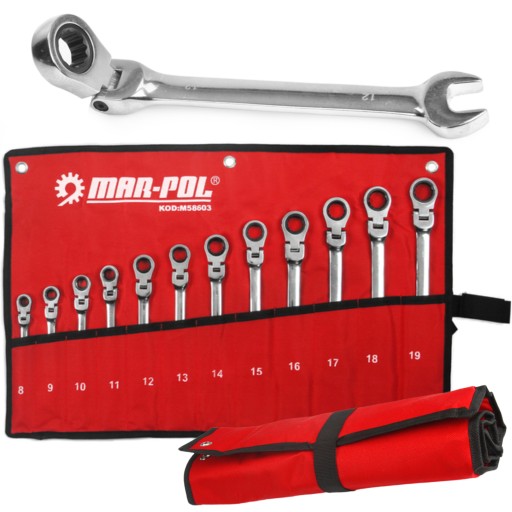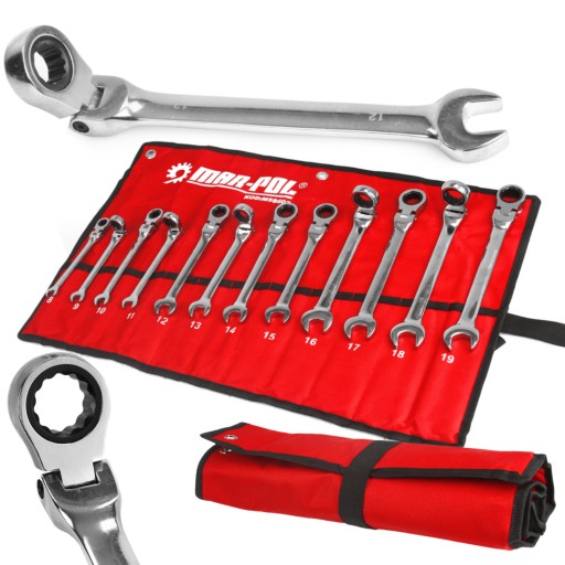 Zestaw kluczy płasko - oczkowych z GRZECHOTKĄ 12 el 8 - 19 mm MAR-POL