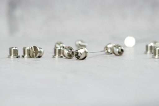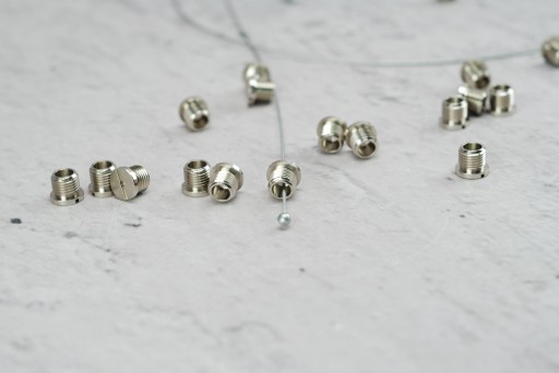 Stoper linki posiada otwór przez który przeplatamy linkę tak aby kulka zablokowała się w środku. Dzięki temu całość jest zablokowana. Następnie stoper wkręcamy do gniazda lub innego elementu M10x1.