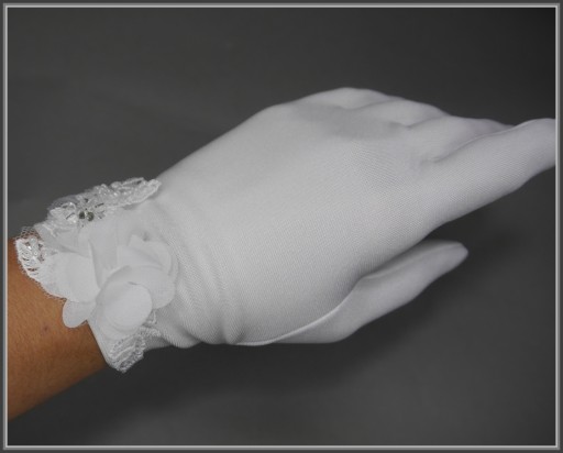 Komplet komunijny: Rękawiczki komunijne pięciopalczaste, torebka w kształcie woreczka z wkładką pomagającą w zachowaniu kształtu nawet po obciążeniu. Wykonana z satyny ślubnej pierwszego gatunku i ozdobiona śliczną aplikacją 3D. oraz okapnik na świece komunijne ozdobiony elementem tej samej aplikacji. Cena nie zawiera świecy !!!