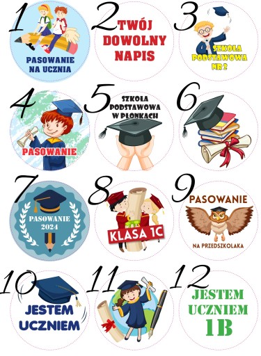 UWAGA! W wiadomości do sprzedającego wpisz numer naklejki i personalizowany na niej tekst (naklejki z numeracją poniżej)