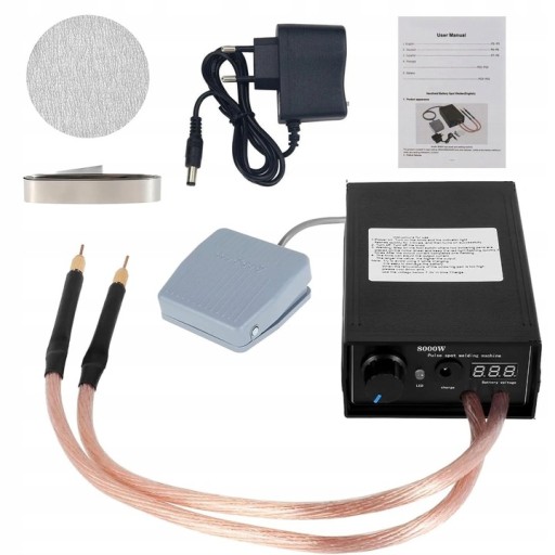 Spawarka akumulatorowa jest specjalnie zaprojektowana do spawania akumulatorów 18650 i może być również używana do spawania taśm niklowych o grubości 0,1, 0,15, 0,2, 0,25, 0,3 mm.