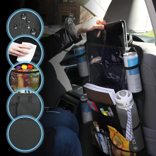 🚘️Torba do przechowywania na oparcie fotela samochodowego z 10-calową przezroczystą kieszenią z okienkiem, wodoodporna tkanina Oxford