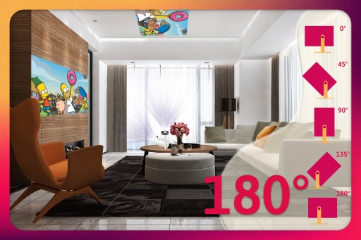 Dzięki obrotowej podstawie projektora mamy możliwość dostosowania odpowiedniego kąta, aby idealnie dopasować projekcję do przestrzeni. Nie potrzebujemy żadnych podstawek — dostosujemy obraz od podłogi aż do sufitu.