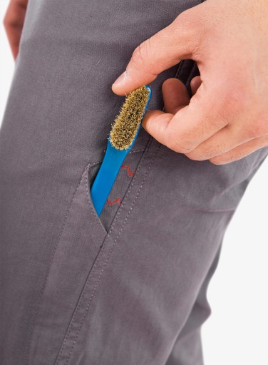Spodnie wspinaczkowe Ocun Cronos Pants posiadają wąski krój, a wysoce rozciągliwy i świetnie oddychający materiał spotęguje poczucie komfortu ich użytkowania. Znajdziesz w nich boczny uchwyt na szczoteczkę, oraz kieszeń na telefon komórkowy lub topo. Krawędzie kieszeni wzmocnione zostały specjalnymi nitami, a zamki błyskawiczne zastosowane w spodniach to produkt renomowanej marki YKK®.