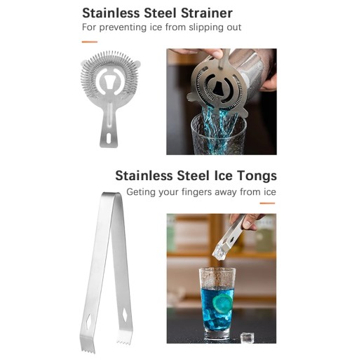 ☘️ 【Trwały materiał ze stali nierdzewnej】 ☘️ Wykonany głównie z wysokiej jakości materiału ze stali nierdzewnej 304 i przyjmujący proces polerowania, ten zestaw do wytrząsania koktajli nie tylko wygląda modnie i pożądanie, ale został profesjonalnie zaprojektowany, aby przetrwać całe życie. ☘️【Idealny dla miłośnika koktajli】 ☘️Niezależnie od tego, czy jesteś barmanem-amatorem, czy profesjonalnym guru mieszania koktajli, niezależnie od tego, czy zakładasz bar w domu, czy w pracy, ten zestaw barów to świetny sposób na rozpoczęcie pracy. ☘️【Wszechstronny zestaw do mieszania napojów】 ☘️Możesz użyć tego zestawu do mieszania dowolnych napojów, takich jak Mojito, Martini, Margaritas, Whisky, Scotch, Wódka, Tequila, Gin, Rum i inne. ☘️【Kompaktowy zestaw Home Bar】 ☘️Twórz orzeźwiające napoje na każdą okazję! Idealny do domowego baru, baru biurowego, specjalnych wydarzeń i przyjęć, ten zestaw do wytrząsania koktajli jest kompaktowy i przenośny. ☘️Dane techniczne: ☘️Kolor: srebrny ☘️Materiał: stal nierdzewna ☘️Pojemność shakera: ☘️550 ML/750ML (opcjonalnie) ☘️Lista pakowania: ☘️1 * Shaker ☘️1 * Jigger ☘️4 * Nalewaki ☘️1 * Kruszarka do lodu ☘️1 * Szczypce do lodu ☘️ 1 * łyżka ze słomy ☘️1 * sitko ☘️1 * otwieracz do butelek ☘️1 * wiaderko do lodu ☘️4 * korki