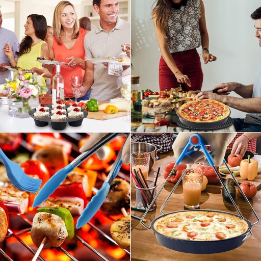 ✅ Wszystkie akcesoria można myć w zmywarce (Uwaga: wiadro do pieczenia i patelnia do pizzy są pokryte nieprzywierającą powłoką teflonową, do wycierania nie należy używać mocnej szmatki ani metalowych kulek).