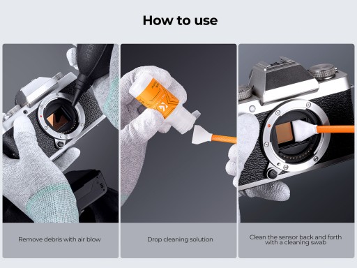 Czyszczenie matrycy APS-C z zestawem K&F Concept jest szybkie, bezpieczne i wygodne. Cały proces to zaledwie 3 proste kroki: