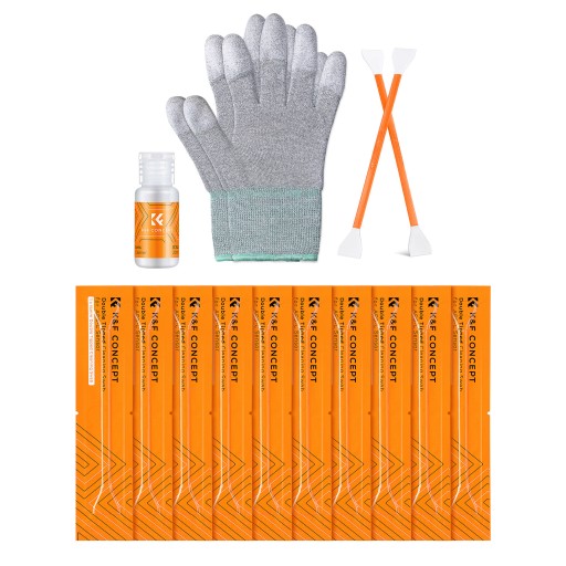 Do zestawu czyszczącego K&F Concept dołączono również specjalne antystatyczne rękawiczki. Pomogą lepiej ochronić Twój sprzęt przed zabrudzeniami i pyłkami, zapewniając jednocześnie stabilny chwyt dzięki antypoślizgowym właściwościom. Dzięki nim czyszczenie matrycy i innych komponentów sprzętu foto-video staje się jeszcze bezpieczniejsze i znacznie skuteczniejsze.