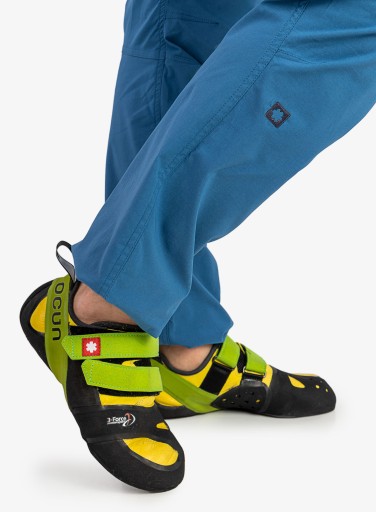 Spodnie wspinaczkowe Ocun Mania Pants - blue/midnight sprawdzą się zarówno w skałach, w górach, jak i na wielogodzinnych sesjach treningowych na panelu. Wykonane z połączenia poliamidu i elastanu oferują wysoki poziom oddychalności. Zostały zaprojektowane w taki sposób, aby zapewnić użytkownikom najwyższy poziom komfortu. Są odpowiednio elastyczne, co w połączeniu ze specjalnie profilowanymi kolanami i luźnym krojem zapewnia maksimum mobilności.