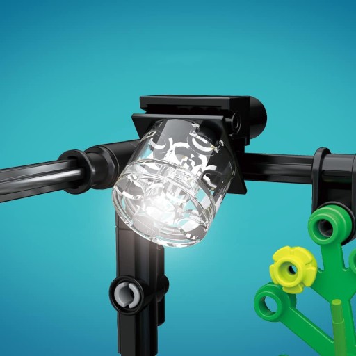 Ten zestaw klocków do budowy akwarium został wyposażony w morskie życie, meduzy, światła sceniczne, odłączane panele tła, a dolne pokrętło można obracać, aby sterować żółwiami. Budowa nie zajmuje dużo czasu, jest zabawna i świetnie wygląda jako dekoracja domu.