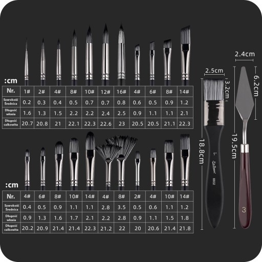 ✍️ Pędzle wykonano z najwyższej jakości nylonowego włosia o bardzo wysokiej trwałości.