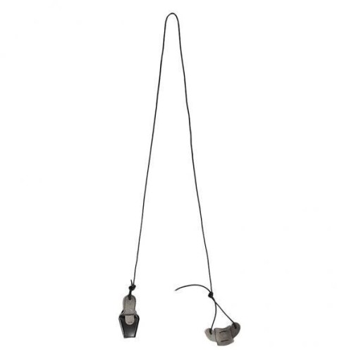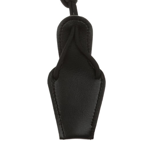 Ze skórą, która otula kończynę górną i skórzaną kieszenią na końcu kończyny dolnej.