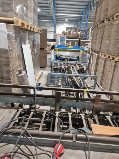 Składarko sklejarka Vega 2400 z automatyczną wiązarką pakietów SBM - włoskiej produkcji.