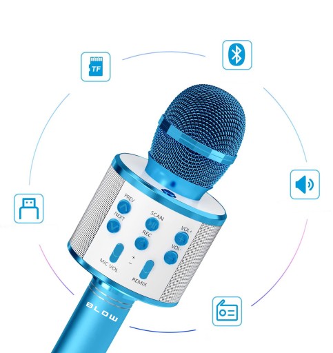 Mikrofon łączy się z naszym smartfonem lub innym urządzeniem za pośrednictwem Bluetooth. Po prawidłowym połączeniu na telefonie uruchamiamy aplikację karaoke lub dowolny podkład muzyczny np.: z serwisu YouTube, a dźwięk będzie wydobywał się z dwóch wbudowanych głośników w naszym mikrofonie. Gdy zaczniemy śpiewać na muzykę nałoży się także nasz głos.