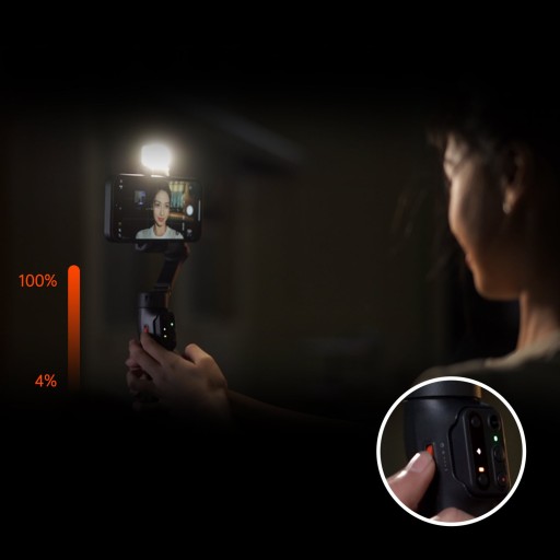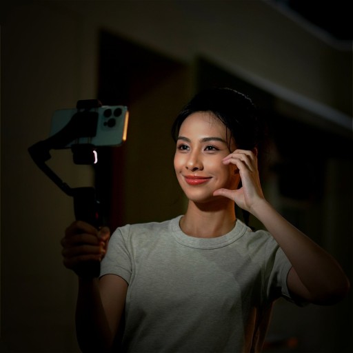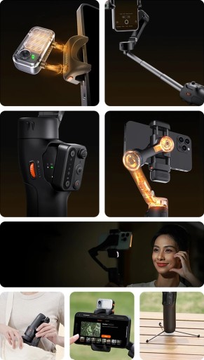 Gimbal wyposażony jest w trójkolorowe oświetlenie wypełniające, które idealnie nadaje się do wyraźnych zdjęć nocnych. Możesz wybierać między zimnym, ciepłym i neutralnym światłem, co pozwala na dostosowanie oświetlenia do różnych warunków. Mocne oświetlenie zapewnia wyraźniejsze sceny w ciemnym otoczeniu.