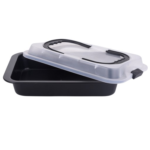 ✅ Blacha do pieczenia wykonana z wysokiej jakości stali węglowej z powłoką nieprzywierającą idealna do każdego rodzaju wypieków. W zestawie również plastikowa pokrywa z uchwytami i zatrzaskami dzięki którym bezpiecznie i bez problemu będzie można przechować czy przenieść upieczone ciasto.