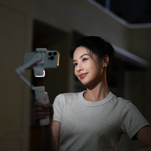 Gimbal wyposażony jest w trójkolorowe oświetlenie wypełniające, które idealnie nadaje się do wyraźnych zdjęć nocnych. Możesz wybierać między zimnym, ciepłym i neutralnym światłem, co pozwala na dostosowanie oświetlenia do różnych warunków. Mocne oświetlenie zapewnia wyraźniejsze sceny w ciemnym otoczeniu.