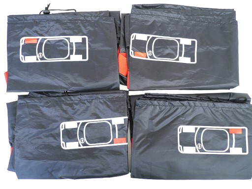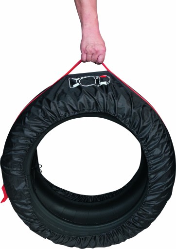 Pokrowce na opony posiadają oznakowanie położenia opon oraz specjalny uchwyt do łatwego przenoszenia oraz powieszenia.