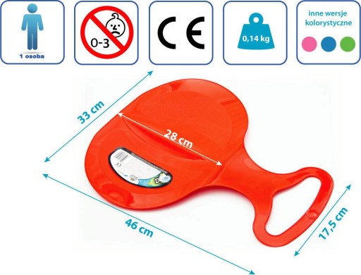 - plastikowa rączka w przedniej części ślizgu gwarantuje bezpieczny zjazd w preferowanej siedzącej lub leżącej pozycji