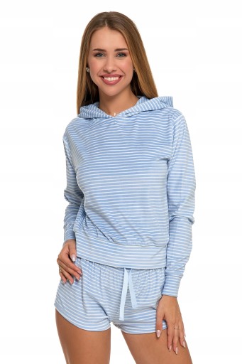 KOMPLET DRESOWY PIŻAMA Z KAPTUREM W PASKI WYGODNA WELUR HOMEWEAR MORAJ M
