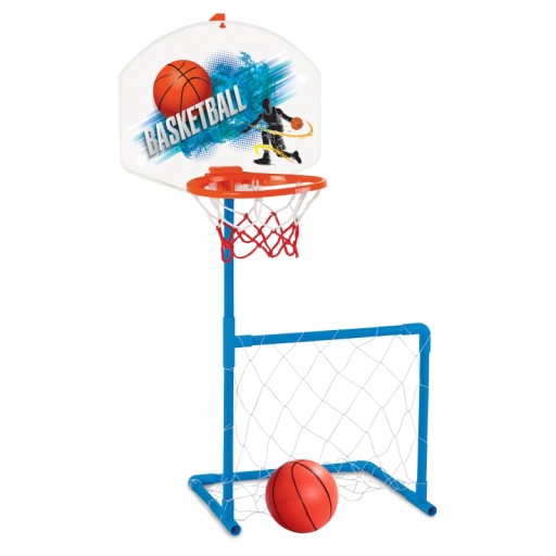 Zestaw sportowy 2w1 koszykówka i bramka marki Woopie jest super połączeniem sportowym dla najmłodszych dzieci! Dziecko może wybrać w co w danej chwili chce zabrać. Dziecko może grać samo w koszykówkę lub z przyjaciółmi w piłkę nożną - nigdy nie będzie się nudzić! Zestaw na pewno zachęca Twoje dziecko do uprawiania sportu. Aktywność dostarczy twojemu dziecku rozwój tzw. dużej motoryki, co jest idealne dla prawidłowego rozwoju dziecka. Wielkim plusem jest to, że produkt może być używany zarówno w domu jak, i na zewnątrz - Twoje dziecko będzie mogło grać wszędzie bez względu na pogodę. Koszykówka jest wysokości 121 cm - doskonała dla najmłodszych graczy!